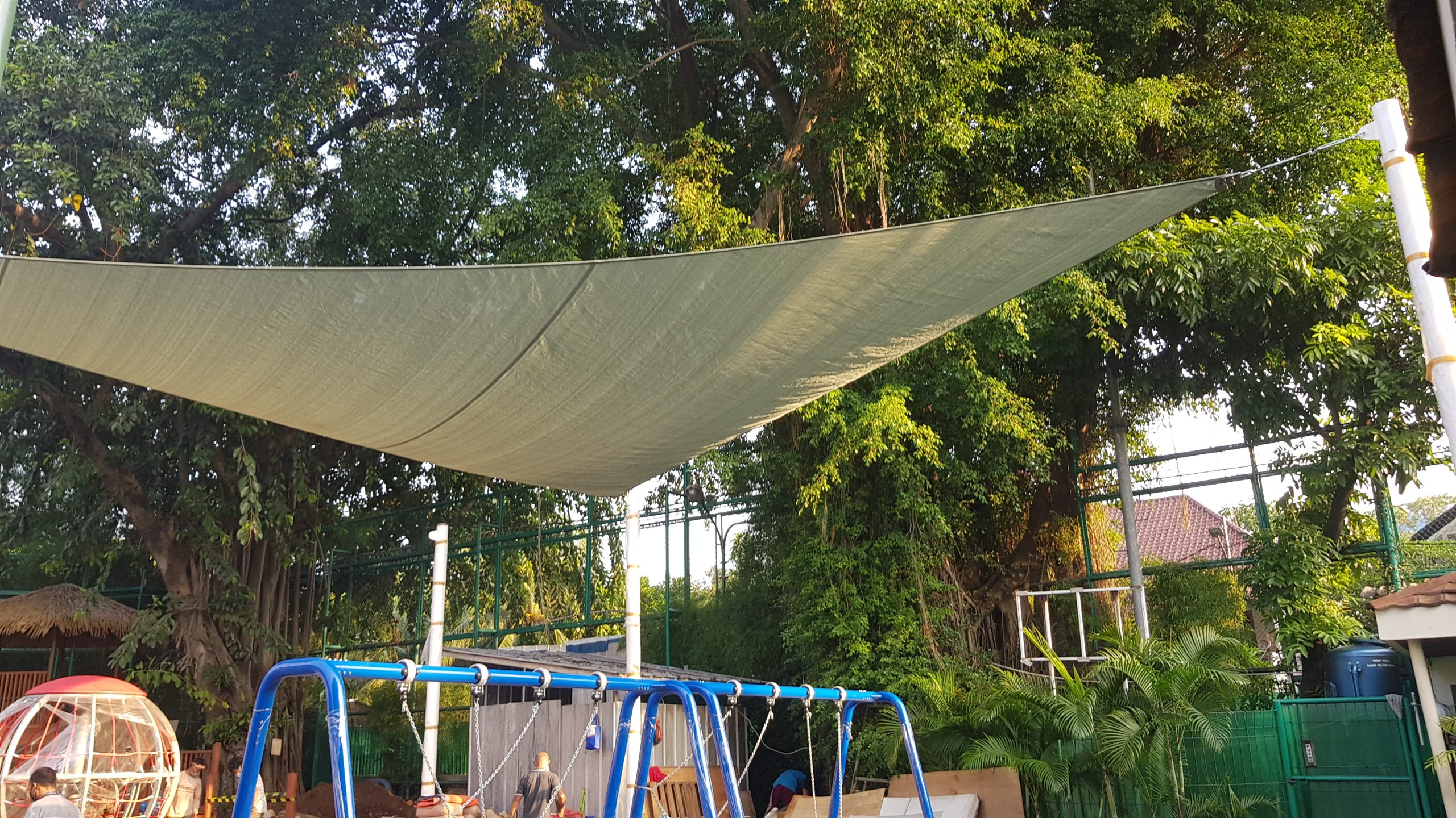 Meredam panasnya sinar matahari, sehingga bisa mencegah paparan langsung sinar UV ke tubuh kita. Tak perlu khawatir lagi saat anak ataupun para orang dewasa ingin beraktivitas atau bermain di area outdoor. Pekerjaan meliputi struktur tiang, aksesoris membran shade, dan kain shade sails berwarna ‘Lime”. Shade sails ini mempunyai luasan 290 meter persegi mencangkupi seluruh area playground. Project ini berlokasi di Jakarta Interculturl School Patimura Campus.