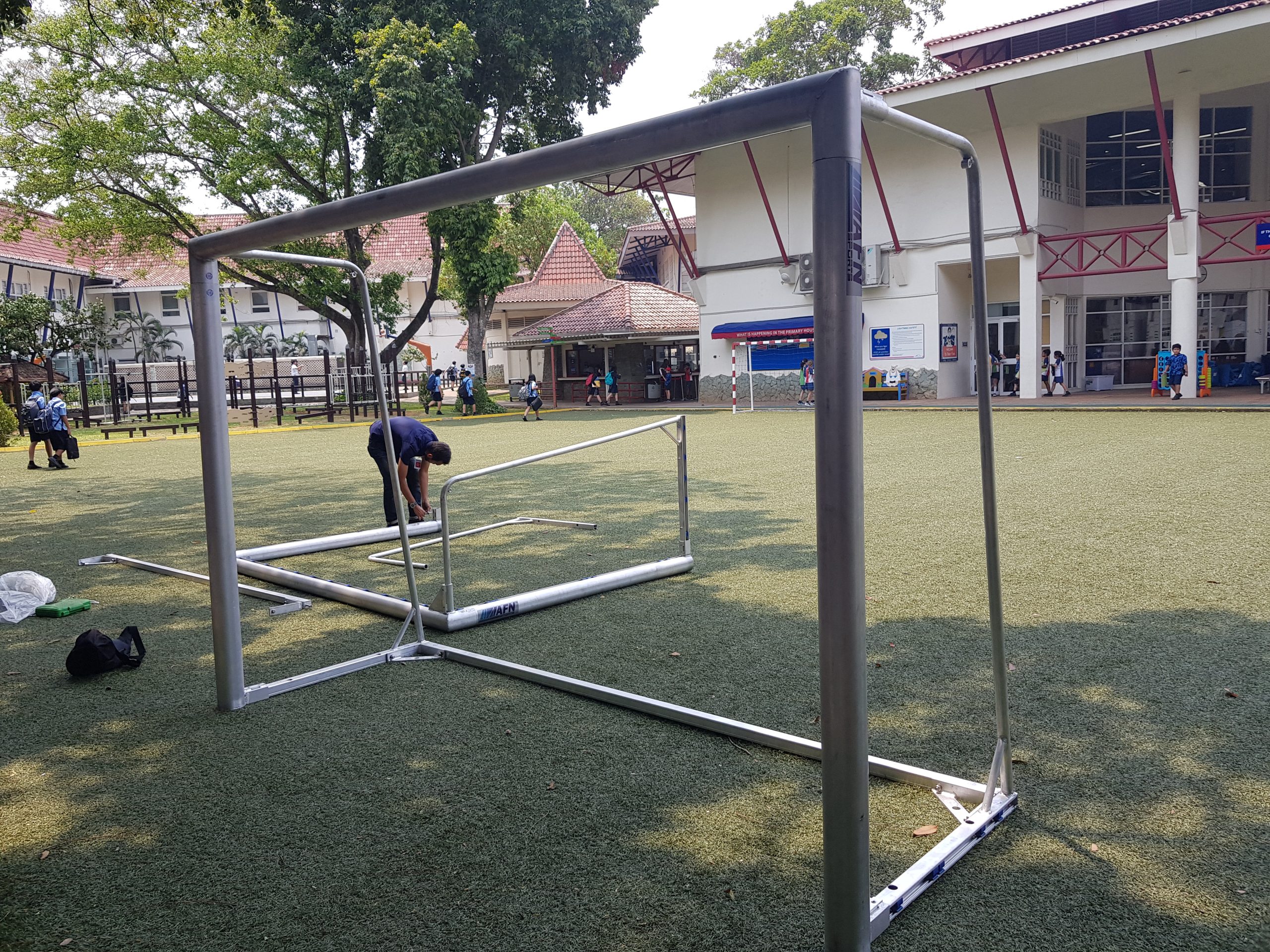 Terbuat dari aluminium profile. Yang sangat cocok di gunakan pada sektor SSB ataupun sekolahan. Karena memudahkan dan ringan untuk di pindah- pindah(moveable). Dimensi ukuran gawang yang sudah sesuai dengan FIFA Approved