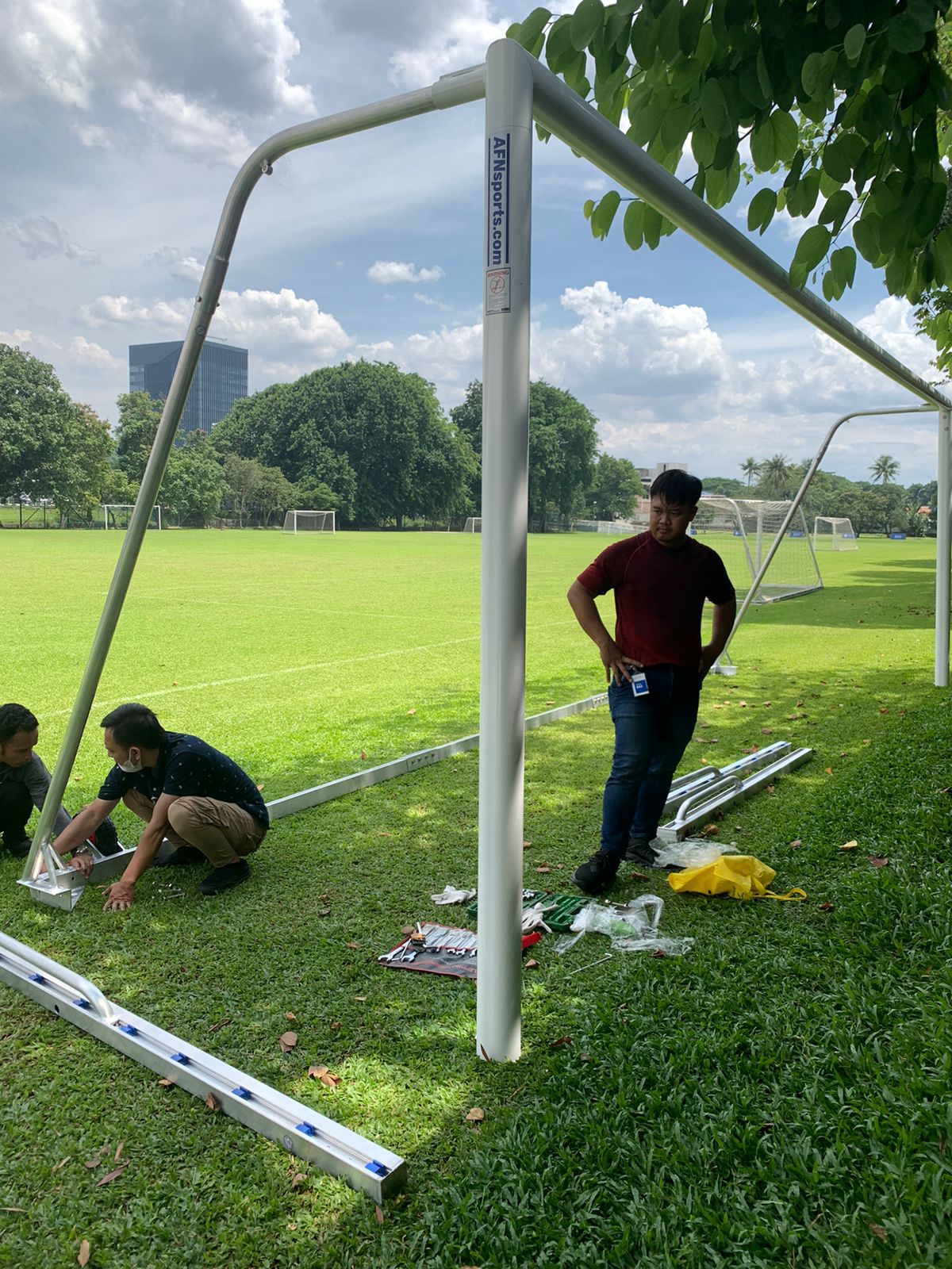 Gawang sepakbola yang terbuat dari aluminium profile. Menggunakan sistem knockdown yang memudahkan pemasangan ataupun penyimpanan. Di lengkapi dengan transport wheels yang akan membantu gawang saat akan di pindahkan. Sangat cocok untuk level sekolahan ataupun practice soccer academy.